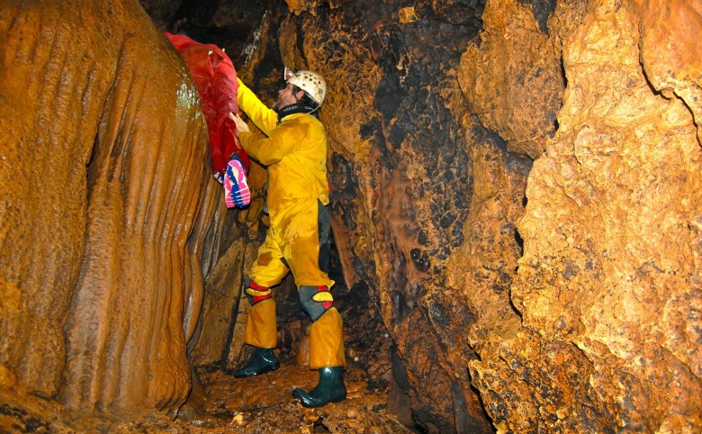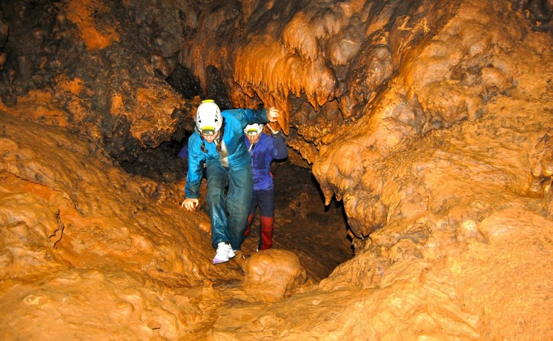 - Exploration de lacavité assez sportive en raison de la faible hauteur de la galerie dans certains passages et de la longueur totale de la progression.