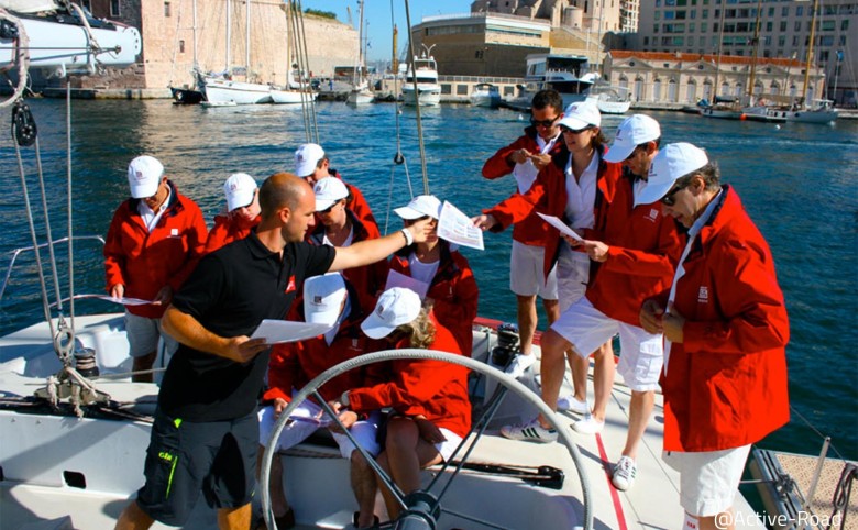 Les participants, sous la direction d’un professionnel de la voile, participeront à bord du bateau à chaque manœuvre pour former un équipage en situation dans le jeu d’une régate.